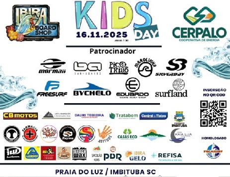 PREFEITURA DE IMBITUBA & SCPAR APRESENTAM CIRCUITO DE SURF AMADOR 2025 SOUTH TO SOUTH TRÍPLlCE COROA IMBITUBENSE 1ª ETAPA PRAIA DE ITAPIRUBÁ 18 e 19 de Abril EVENTO : CONCLUÍDO PARA ACESSAR O EVENTO CLIQUE NO CARTAZ AO LADO |
