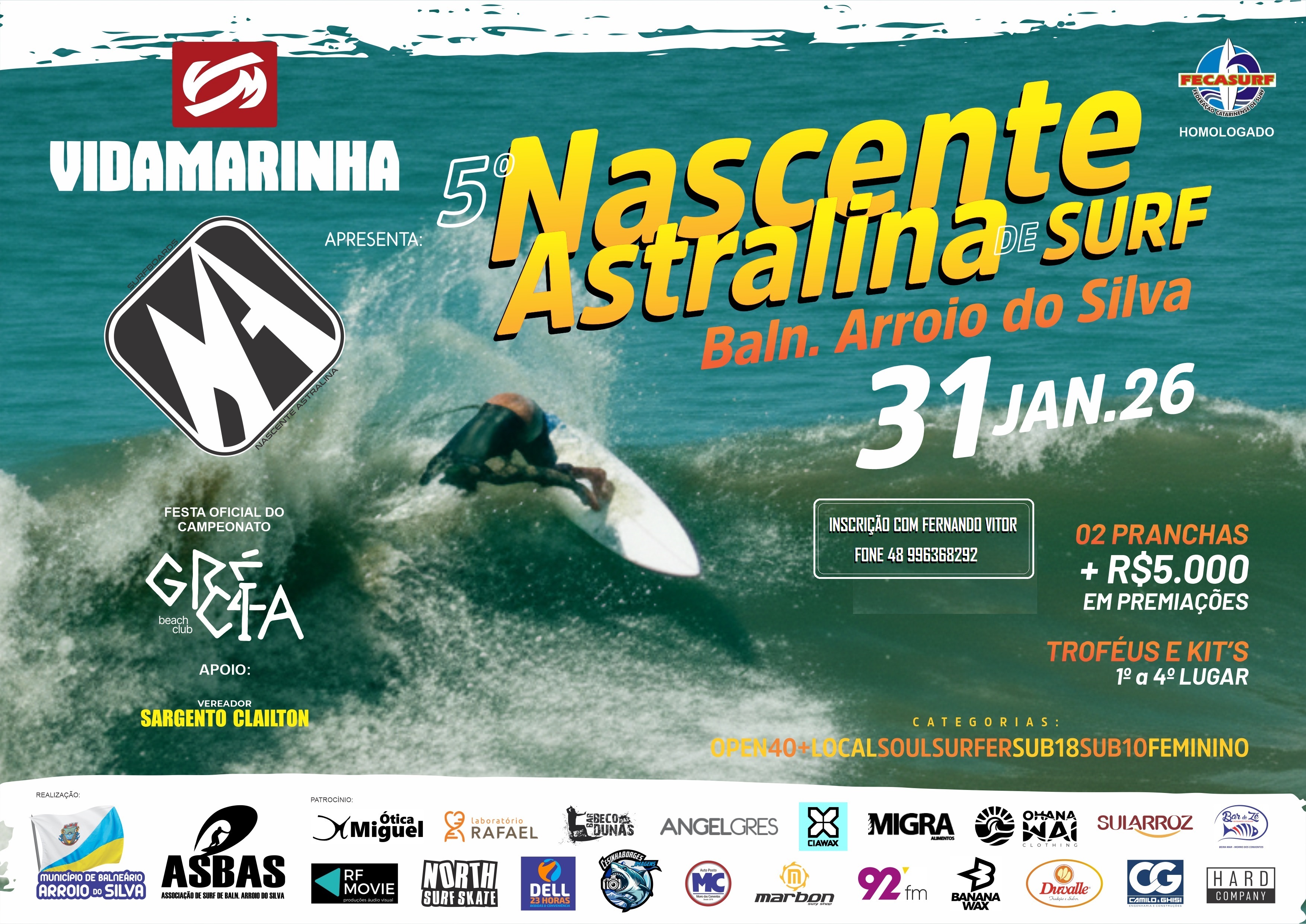 ASBAS apresenta 5º Nascente Astralina de Surf BALN. ARROIO DO SILVA 31 Jan. 2026 PARA ACESSAR O EVENTO CLIQUE NO CARTAZ AO LADO INSCRIÇÕES Fernando Vitor 48 996368292 AGUARDANDO |
